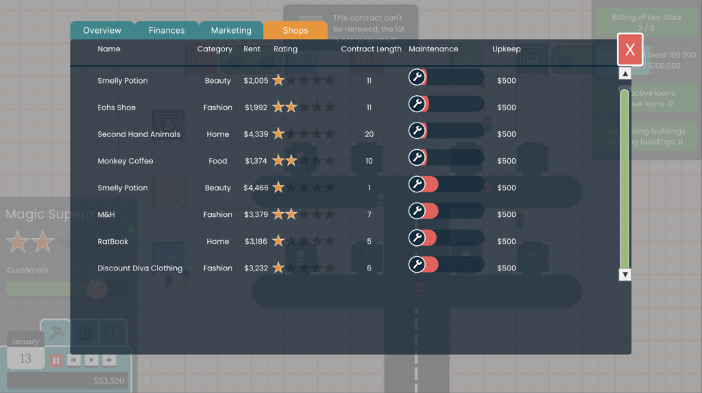 Improve your mall quality and reach the highest ratings!